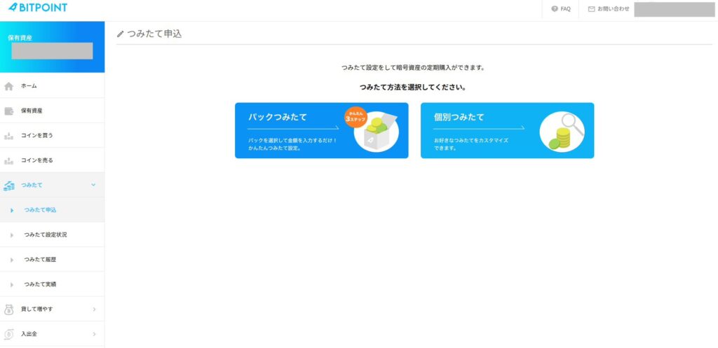 ①パックつみたて→複数の仮想通貨を同時につみたてる方法