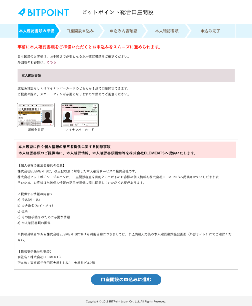 「口座開設の申込みに進む」をクリックし、本人情報の登録を手順に沿って進めてください。
